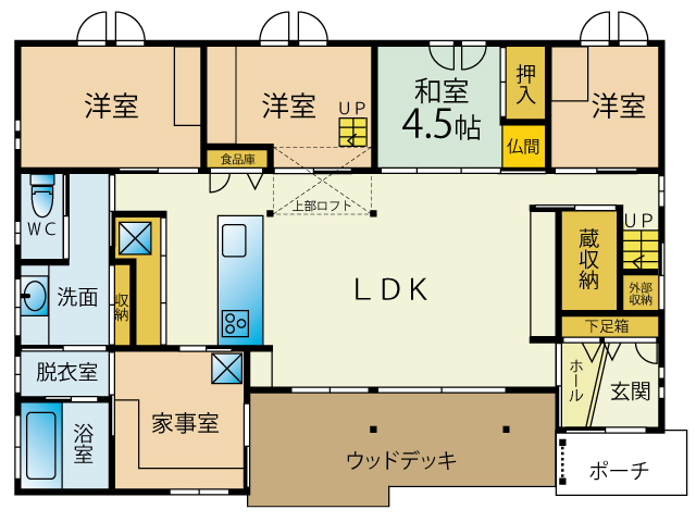 | 担当者のコメント | ☆蔵収納・ロフト付き、収納たくさんの築浅美麗物件です!!開放的で明るい吹抜けLDKは23.5帖あり、和室は小上がり畳で段差の部分に収納があります!!洗面室と脱衣室は独立した造りになっています。広い家事室では洗濯物がたくさん干せます♪ |
